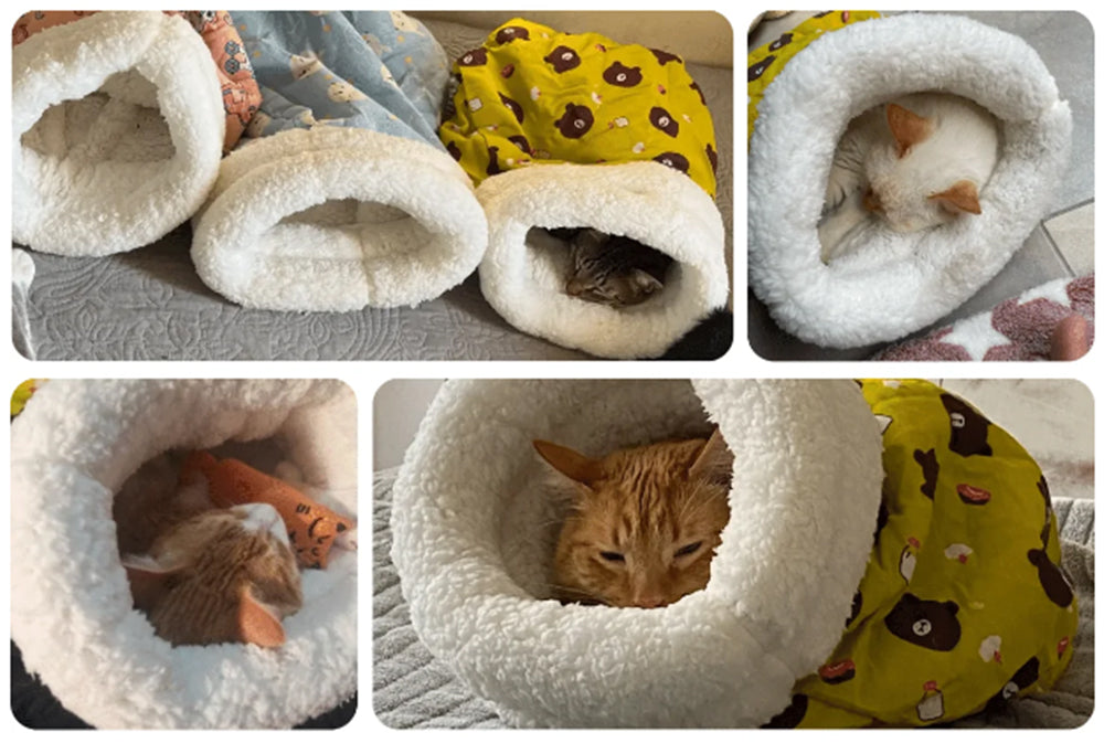 "Vielleicht war es ein Fehler, dieses Bett zu kaufen. Ich habe meine Katze hineingelegt, und sie kommt nicht mehr heraus," teilte Nadja, eine glückliche Besitzerin des Silka Katzen-Schlafsackes, mit.